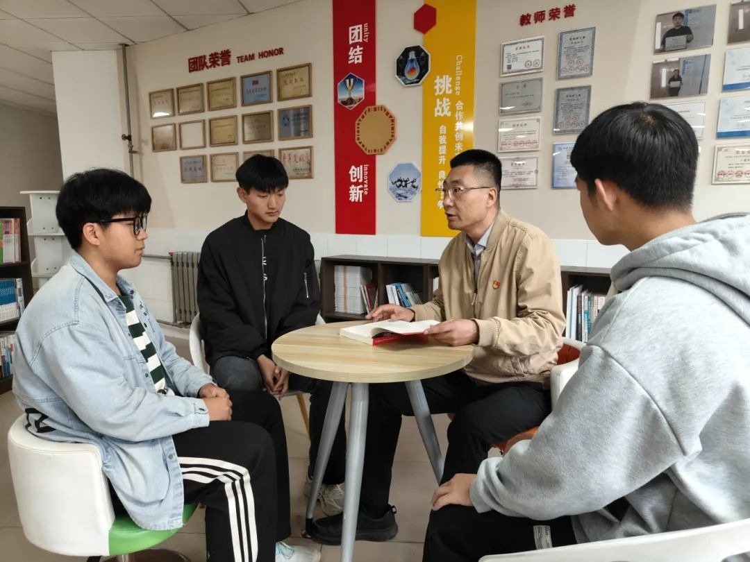 党支部副书记夏玉涛推荐了《习近平与大学生朋友们》,夏书记就如何践行总书记的指示精神、如何为实现中华民族伟大复兴的中国梦贡献自己的力量等问题展开了热烈的讨论。学生党支部书记冯川推荐了《三重门》,在交流的过程中,以其丰富的文学知识和独特的解读角度,为学生们解惑答疑,引导他们更深入地理解和品味书中的情节和内涵。第二学生党支部书记朱治波推荐了《平凡的世界》,提出了“如何在平凡中寻找不平凡?”和“如何在逆境中坚守信念?”等引人深思的问题,激发了学生们的思考热情。第三学生党支部书记孙延鹏推荐了《围城》,孙延鹏书记用生动的语言为学生们讲解了小说的背景和情节,深入解读了其中的隐喻和深意,使大家轻松理解并产生深刻感受。