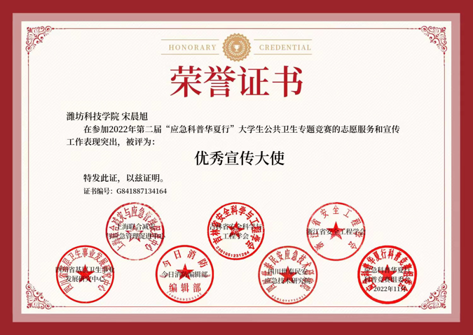 每一个光鲜亮丽的背后,都是用无数辛苦的汗水与不眠的夜晚,以及默默的奋斗所得来的。宋晨旭孜孜不倦、勤于学习,不断探索高效的学习方式,认真对待每一门课程。课余时间里,他先后参加了“BETT杯全国大学生词汇大赛”、“山东省网络技术大赛”、“亚太杯大学生数学建模大赛”并取得佳绩。