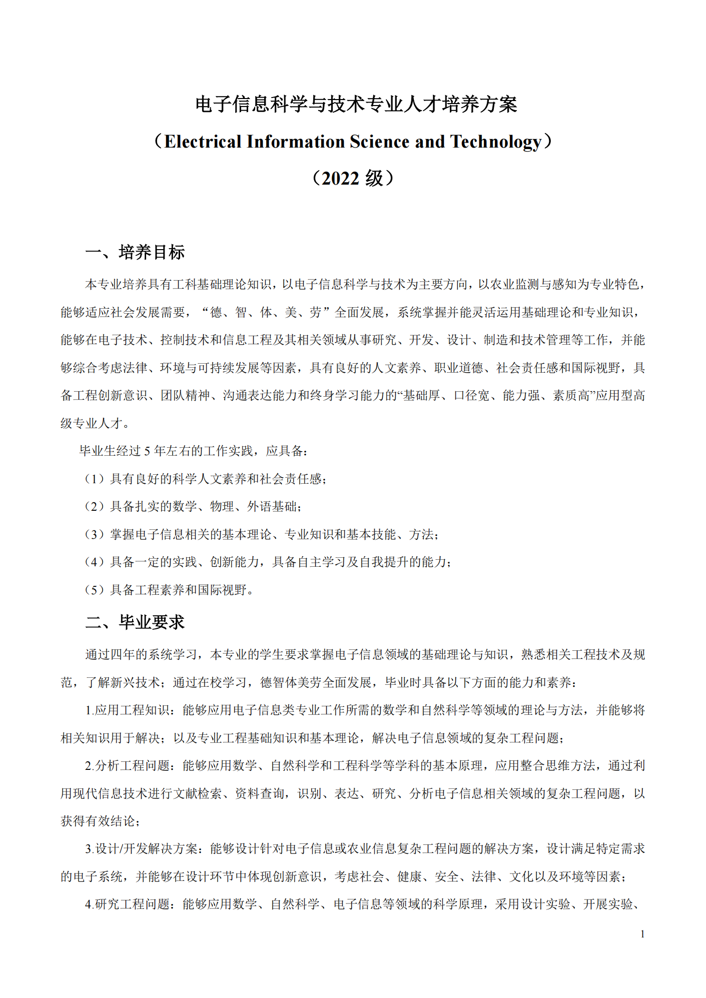 电子信息科学与技术专业人才培养方案 (Electrical Information Science and Technology) (2022 级)