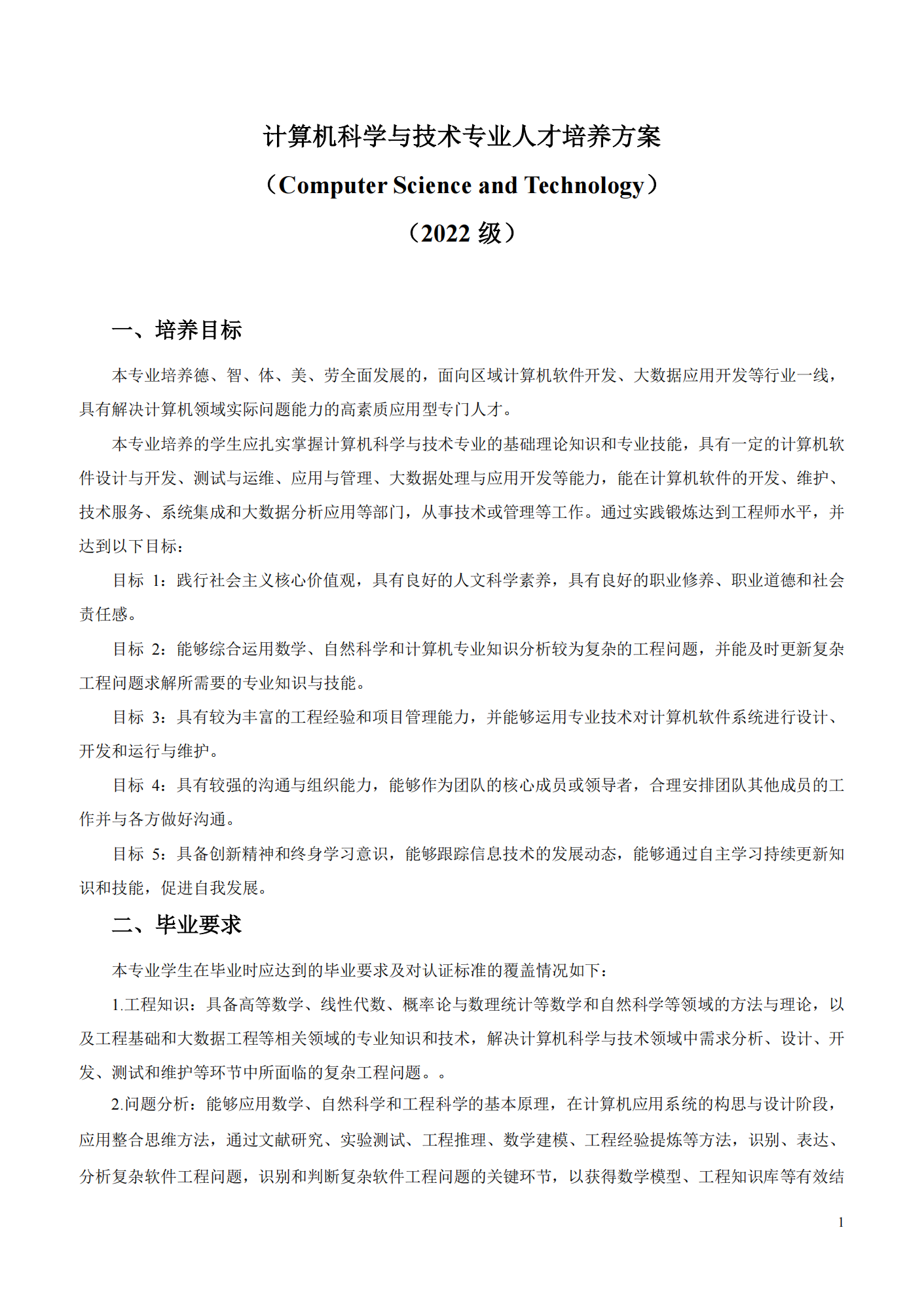 计算机科学与技术专业人才培养方案 (Computer Science and Technology) (2022 级)