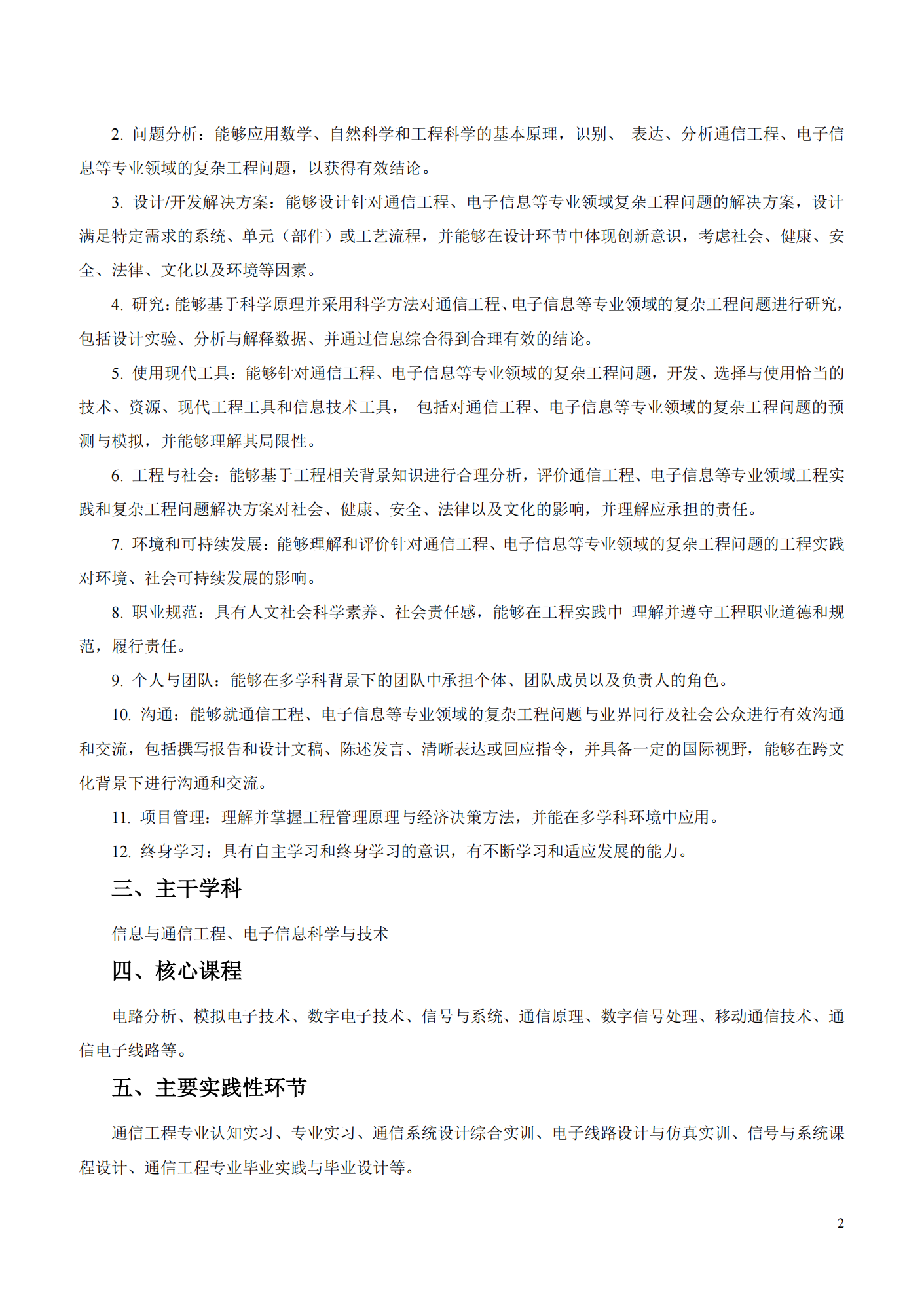 通信工程专业人才培养方案 (Communication Engineering) (2022 级)