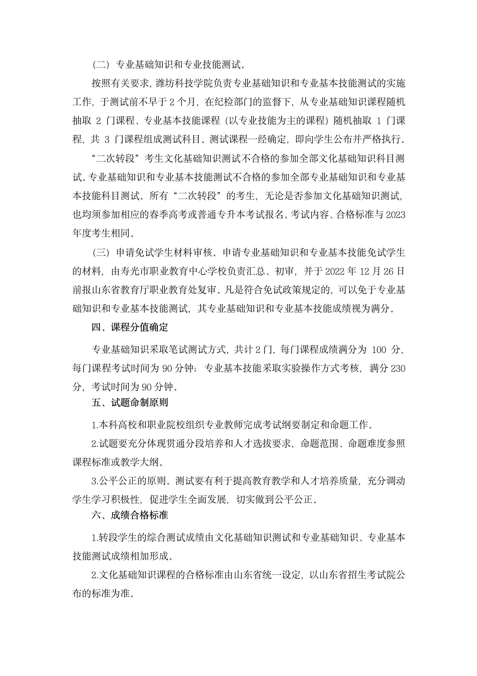 2023年山东省职业院校与高校对口贯通分段培养 计算机科学与技术专业转段测试方案