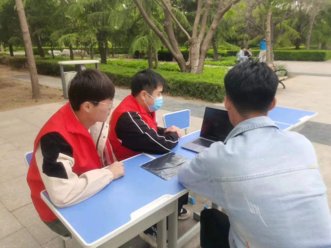 为建立和谐校园,拉近同学之间的关系,解决广大师生在电脑使用方面遇到的各种疑难问题,4月22日上午9点,计算机学院七色光志愿者服务队在雷锋广场开展“计研心潍”电脑管家活动。