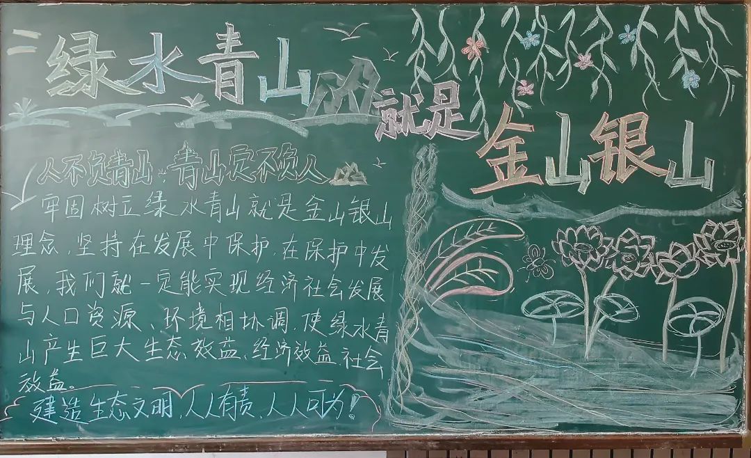 观看环保纪录片环节为同学们带来了一场视觉与心灵的双重冲击。一部部精心挑选的纪录片在大屏幕上展开,它们如同一把把钥匙,打开了同学们认识环境问题的全新视角。纪录片中,那些震撼的画面、真实的数据以及生动的案例,直观地展现了地球生态环境遭受的重创。同时,纪录片也记录了许多为保护环境而不懈努力的人和事,他们的坚持与奉献,为这片伤痕累累的大地带来了希望之光。这些故事深深触动了同学们的内心,更加坚定了同学们投身环保事业的决心。“绿水青山就是金山银山”主题展板绘制活动将本次团日活动推向了高潮。计算机学院的同学们充分发挥专业优势和创意才能,以画笔为媒,以展板为介,描绘出一幅幅充满青春活力与环保理念的艺术作品。在展板绘制现场,同学们分工协作,将自己对绿色发展的理解、对生态环境的热爱以及对未来的美好憧憬融入到每一幅作品中。这些展板不仅形式多样、内容丰富,更彰显了计算机学院同学们的绿色担当,吸引着过往师生驻足观看,传递出同学们对环保的热情和决心。