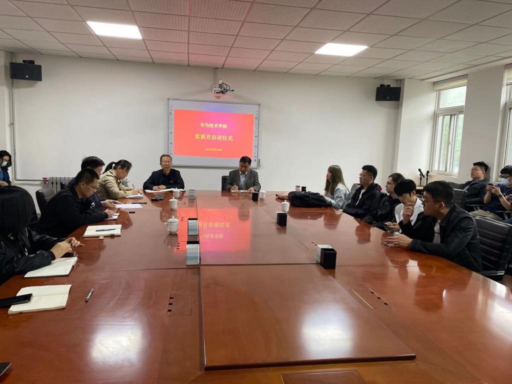 5月10日上午,华为技术学院实训月启动仪式在华为技术学院202举行,实训企业负责人、校内指导教师共计40余人参加了启动仪式。