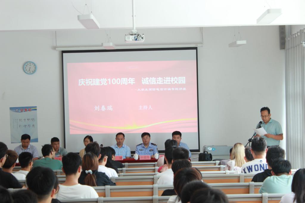为推进校园诚信建设,建立诚实守信的良好风尚,全力打造“诚信潍坊”的城市名片,营造“知信、用信、守信”的良好校园氛围。 6月17日下午,永利集团华为技术学院联合潍坊市发改委、市公安局、市信用协会举办“庆祝建党100周年诚信进校园——大学生预防电信诈骗专题讲座”活动。
