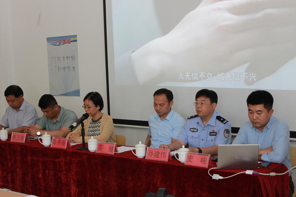 会议第一项共同观看“信用潍坊”宣传片。会议第二项由王建东书记致辞,他指出多年来,学校一贯高度重视、着力推进诚信平安校园建设,秉承“责任重于泰山”的宗旨,始终以“教育发展,安全先行”为理念,全力打造“诚信平安校园”。会议第三项由中红网山东频道运营中心副主任、潍坊市信用协会李卫东秘书长致辞。会议第四项授牌仪式,由苏建同志为学校授牌,王建东书记接牌。会议第五项由孙建伟副主任作总结报告。会议最后一项由学生代表签署“坚决不参与电信网络违法犯罪承诺书”。