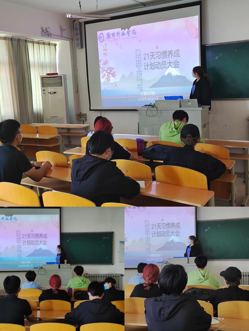 为进一步提升校园风气,陶冶学生们的学习氛围,激发同学们的积极性与主动性,让同学们在优良学风的熏陶下激励斗志,潜心向学,养成优良的学习习惯,我院4月21日开展“21天习惯养成计划动员大赛”。各班学生积极响应参加了此次动员大会。