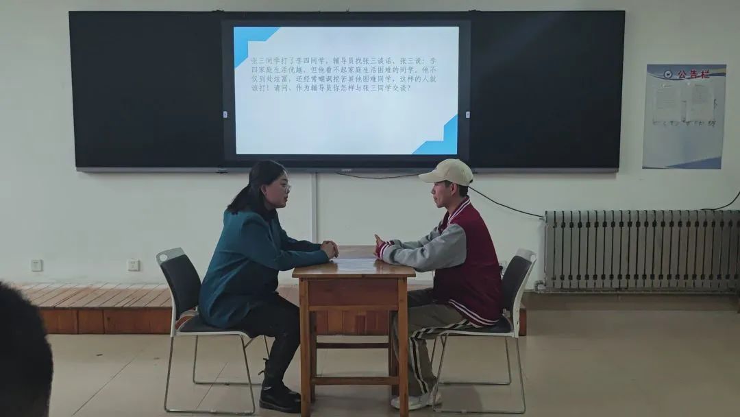 为深入学习贯彻习近平新时代中国特色社会主义思想和党的二十届二中全会精神,根据《普通高等学校辅导员队伍建设规定》《高等学校辅导员职业能力标准(暂行)》要求,突出以赛代练、以赛代训,强化以赛促学、以赛促建,不断提升高校辅导员的理论水平、专业素养和综合能力,全面提高辅导员工作的针对性和亲和力,促进辅导员队伍专业化职业化发展。4月3日下午两点,计算机学院在401教室举行第九届辅导员技能大赛情景模拟。