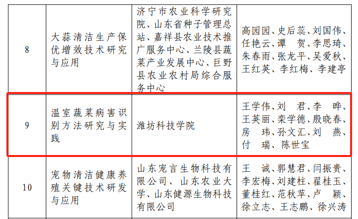 5月22日,2023年度齐鲁农业科技奖评审落下帷幕,经过资格审查、专家网评、专家会评等各项环节,共评出技术创新奖一等奖10项、二等奖20项、三等奖20项。由计算机学院院长王学伟牵头申报的“温室蔬菜病害识别方法研究与实践”成果获齐鲁农业科技奖技术创新奖三等奖。