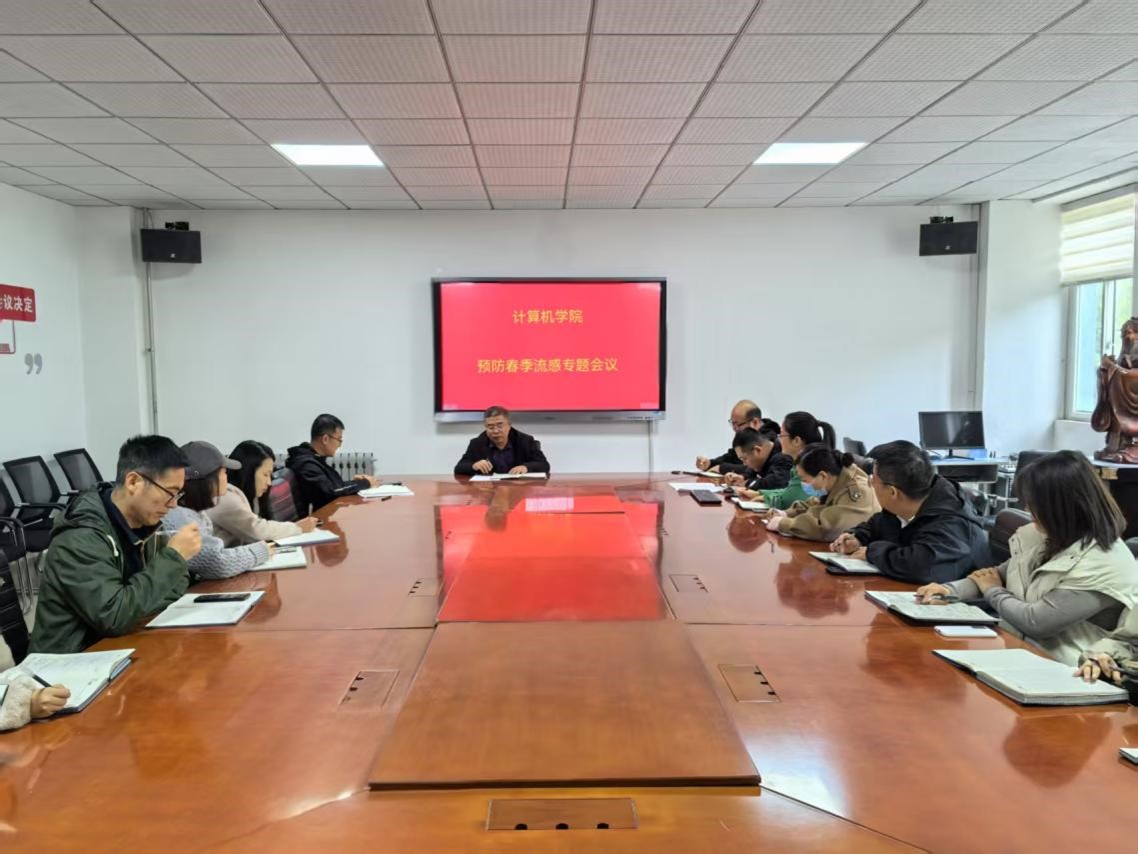 2025年3月24日,计算机学院召开春季流感防控专题工作会议。会议由书记张治海主持,副书记冯川及全体辅导员参与会议。会议针对“学生多、通风少、人流大”等春季流感防控工作形势与挑战,统一辅导员思想认识,压实深入宿舍和班会效果,将防控工作作为当前工作的关键要点,切实将春季流感防控贯穿到日常管理和学生教育的各个环节。