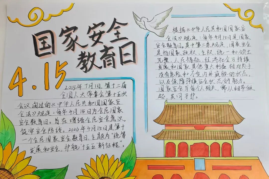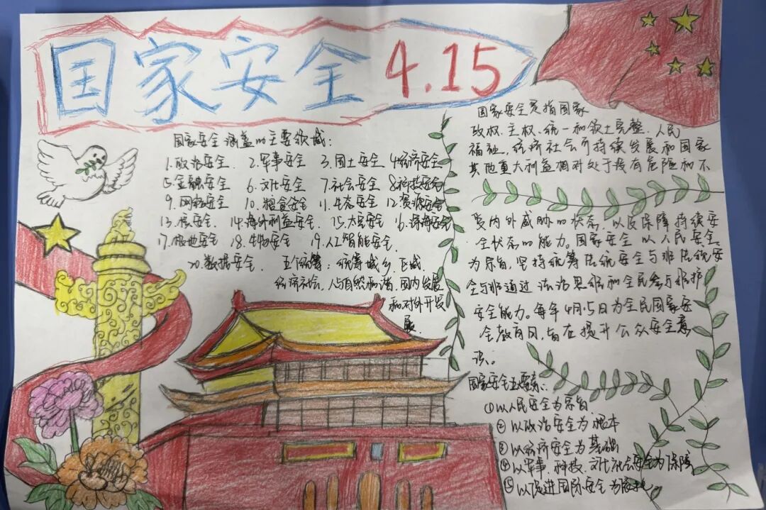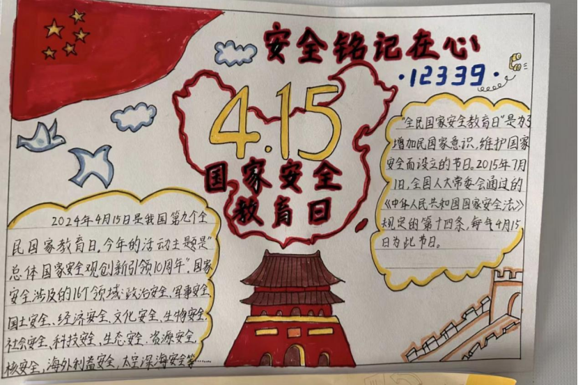 为普及国家安全知识,增强青年学子的安全意识,在4·15国家安全日到来之际,我院团总支举办国家安全教育手抄报创作活动。同学们围绕“总体国家安全观”,精心设计版面,搜集保密知识、防范技巧等内容,用色彩与画笔生动解读国家安全内涵。一幅幅作品主题鲜明、设计精巧,将枯燥的法条转化为趣味图文。通过手脑并用的创作过程,同学们进一步深化了对国家安全的理解,树立了国家安全人人有责的责任意识。