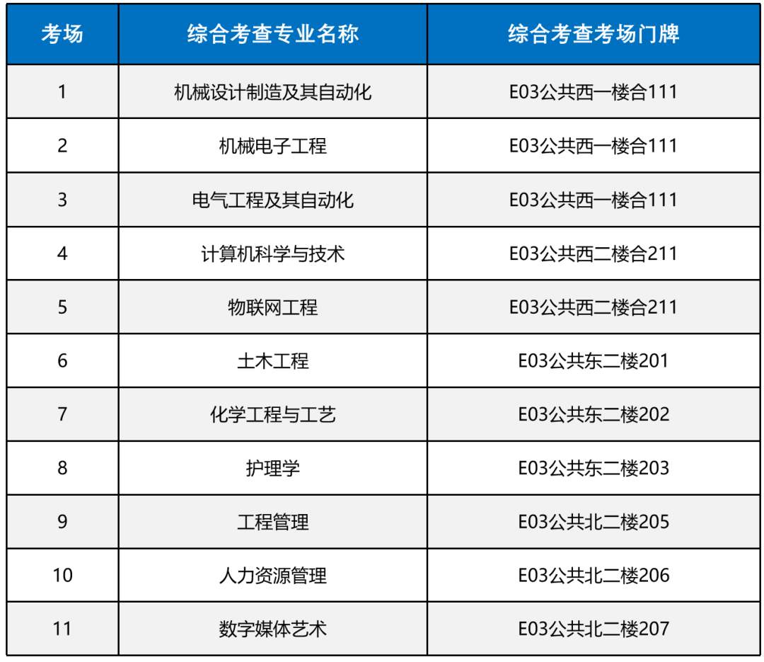 (四)综合考查地点及考场安排(人员及座号见当天考场外)